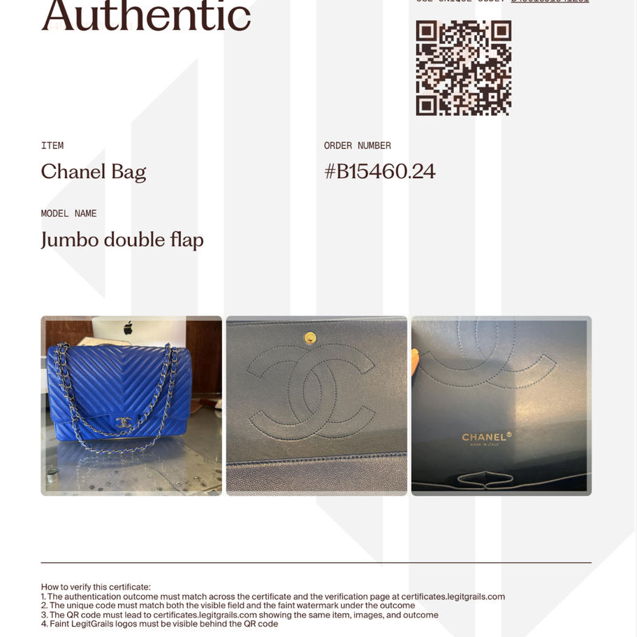 Deslumbrante Chanel Caviar Chevron Quilted Jumbo Double Flap em Azul Brilhante. Feito de couro caviar matelassado em chevron azul. A bolsa apresenta alças de ombro em couro entrelaçadas com corrente prateada brilhante e um flap frontal com um fecho giratório CC prateado brilhante. Isso se abre para um interior de couro combinando com um segundo flap e bolsos de patch.
