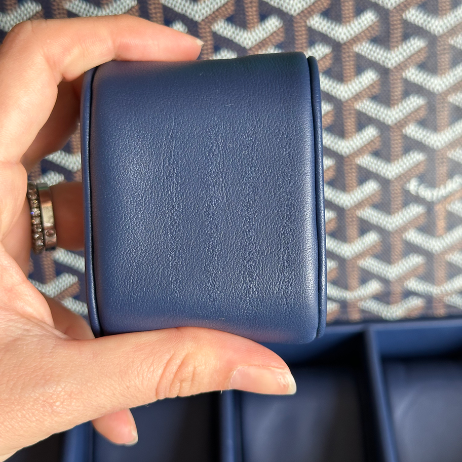 A caixa de relógio 8 é totalmente feita à mão, utilizando a expertise tradicional da fabricação de baús, incluindo a costura dos cantos – uma das principais referências ao artesanato. Suas 8 almofadas internas são perfeitas para transportar relógios com segurança.